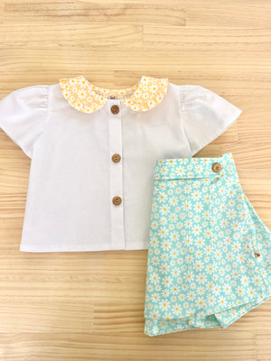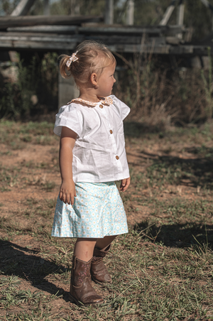 Made from 100% pure cotton, Misty is crisp, soft, and breathable - perfect for any occasion, from everyday wear to special celebrations. The gentle puff sleeves add a timeless touch, while the sunshine floral collar brings just the right amount of colour and joy.